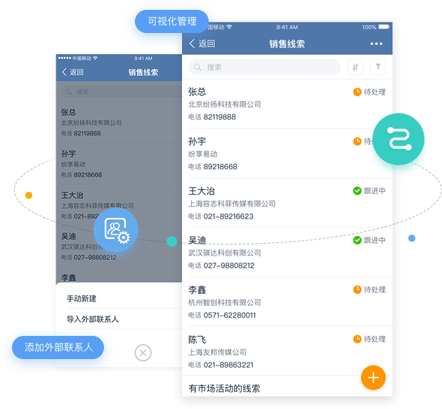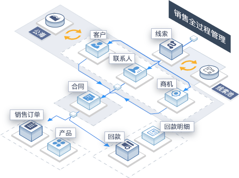 从线索-商机-成交数据全留存,不同阶段不同销售流程;
