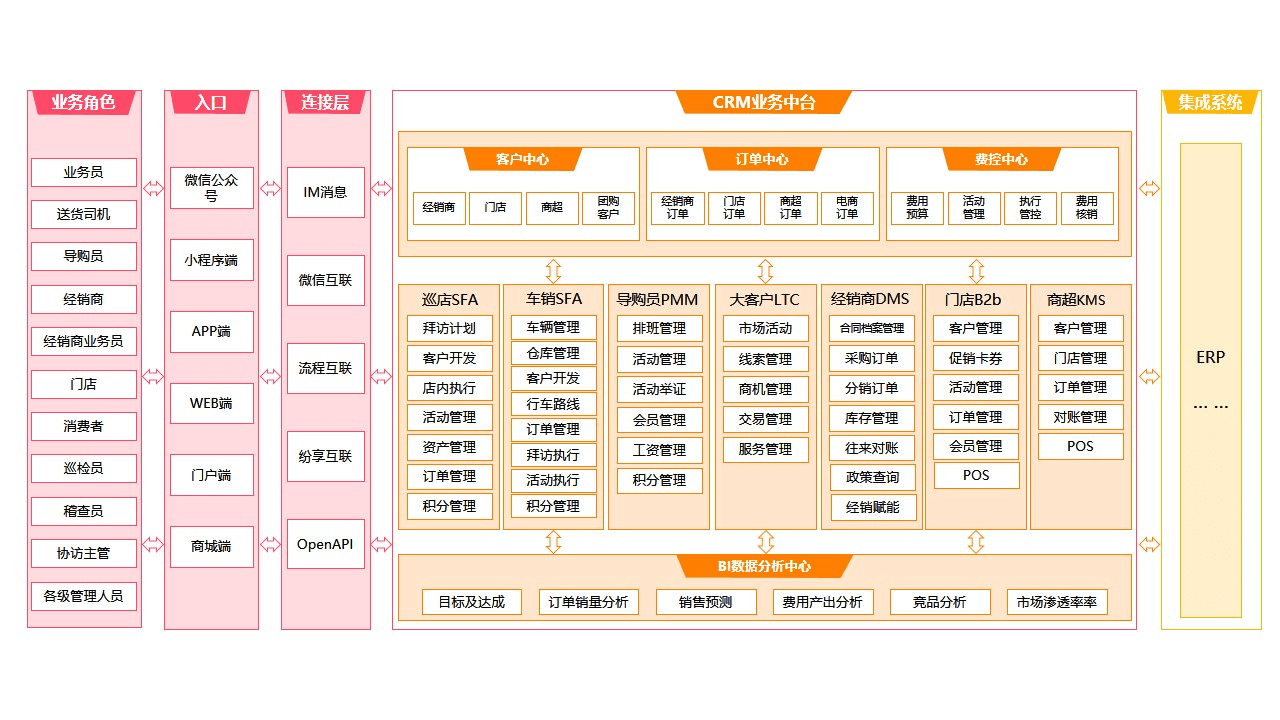 为快消行业打造“访-销-费-促-商”一体化解决方案,通过多角色终端协同(业务员/司机/导购)、智能巡店车销SFA及费控-订单双中心驱动,实现从终端拜访到动销分析的闭环管理,赋能渠道精耕与费用精准投放。