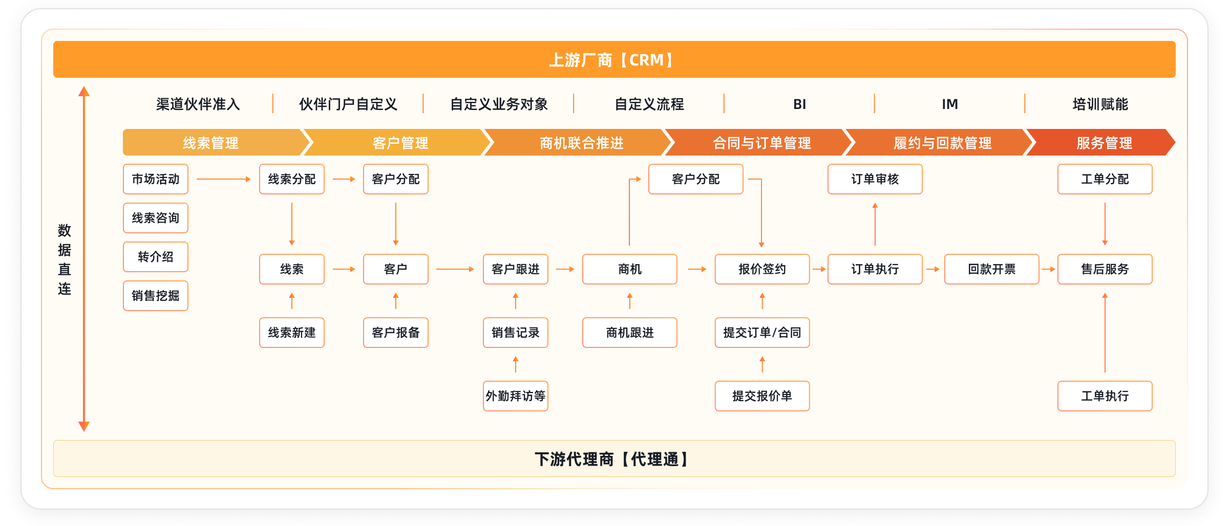 纷享销客打造了专门的渠道管理解决方案,将CRM的销售、营销、服务功能延伸至海外合作伙伴,构建协同高效的渠道生态: