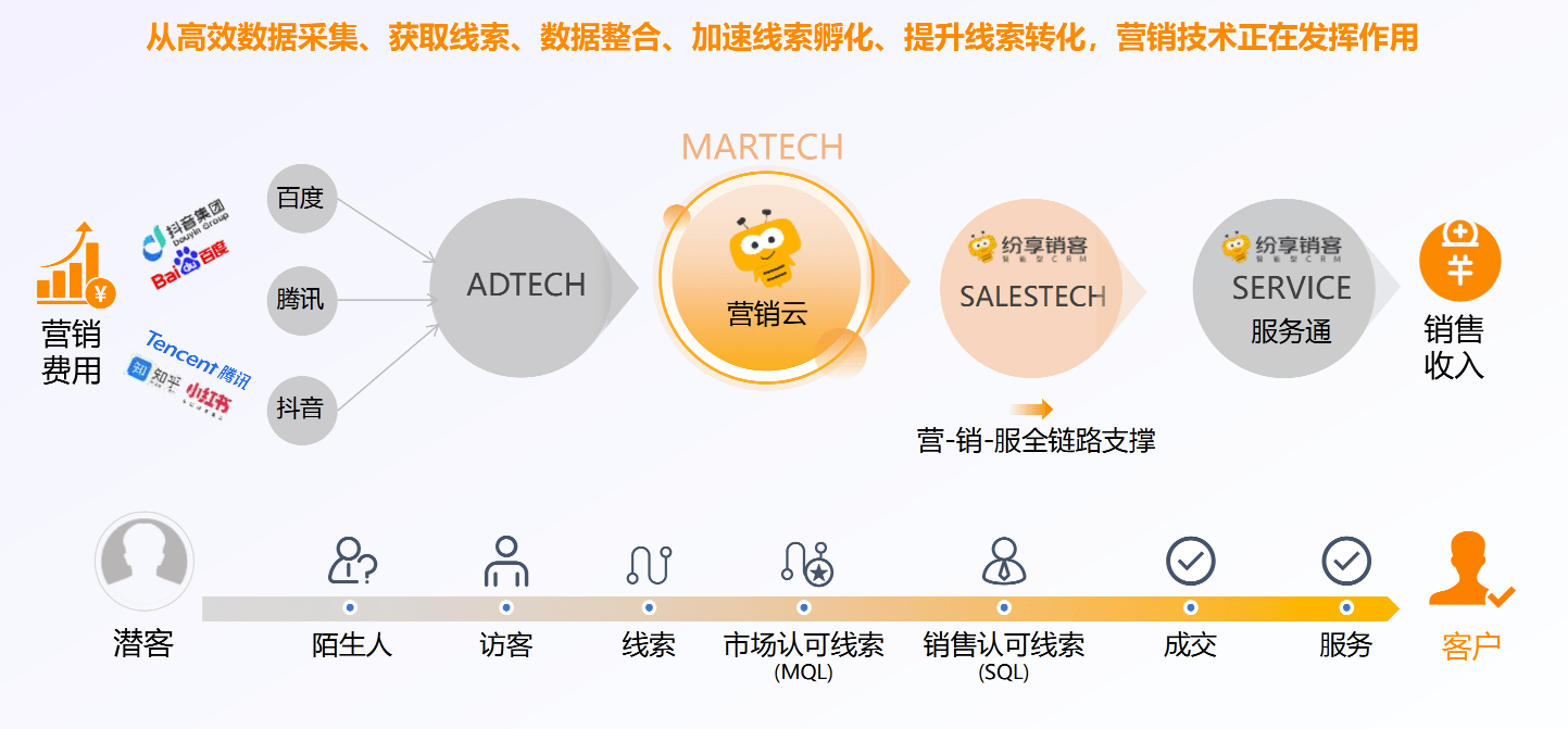 传统CRM侧重销售过程管理与客户信息存储,而营销云聚焦于前端获客、线索培育与营销自动化。两者并非替代关系,而是互补协同。现代营销云(如纷享销客)通常与CRM深度集成,实现MQL到SQL的无缝流转,形成“营销获客—销售转化—服务复购”的完整闭环。