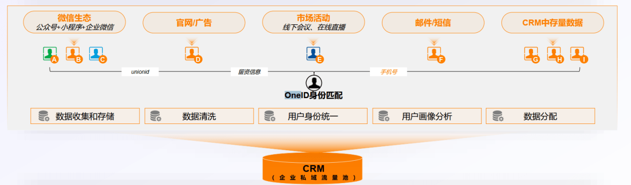 B2B买家的决策过程往往跨越多周、多月甚至数年,跨越PC、微信、线下等多个维度。纷享销客的客户数据中台(CDP)通过独创的OneID算法模型,实现了跨渠道的身份归一化。