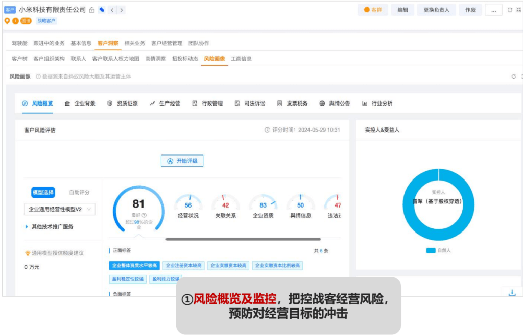 纷享销客集成企业风险数据,帮助销售人员在售前签约阶段识别潜在风险,保护企业利益: