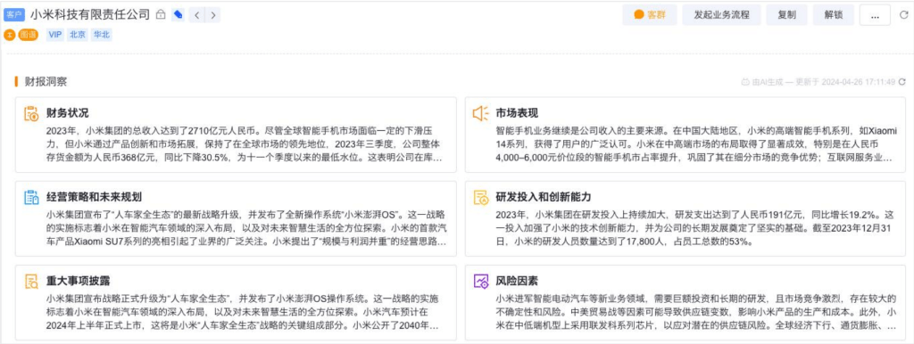 随着人工智能技术的发展,客户分级管理正朝着更加智能化、预测性的方向发展。纷享销客CRM集成的AI能力,已经开始在风险洞察、商机预测、智能评分等方面发挥重要作用: