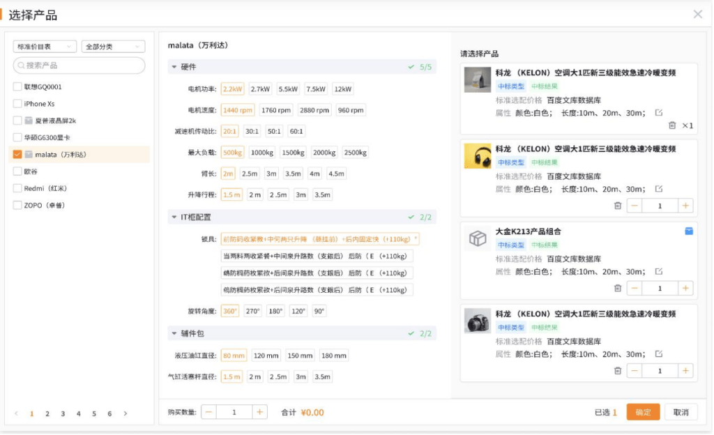 多模式报价:支持产品选配、属性引导、商城自助、历史报价参考等多种方式;