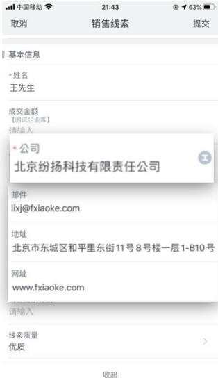 企业工商信息自动回填:完善企业画像,识别潜在客户规模与行业属性。