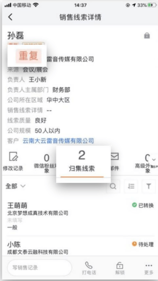 重复线索管理:通过自动查重避免撞单,提升资源利用率。