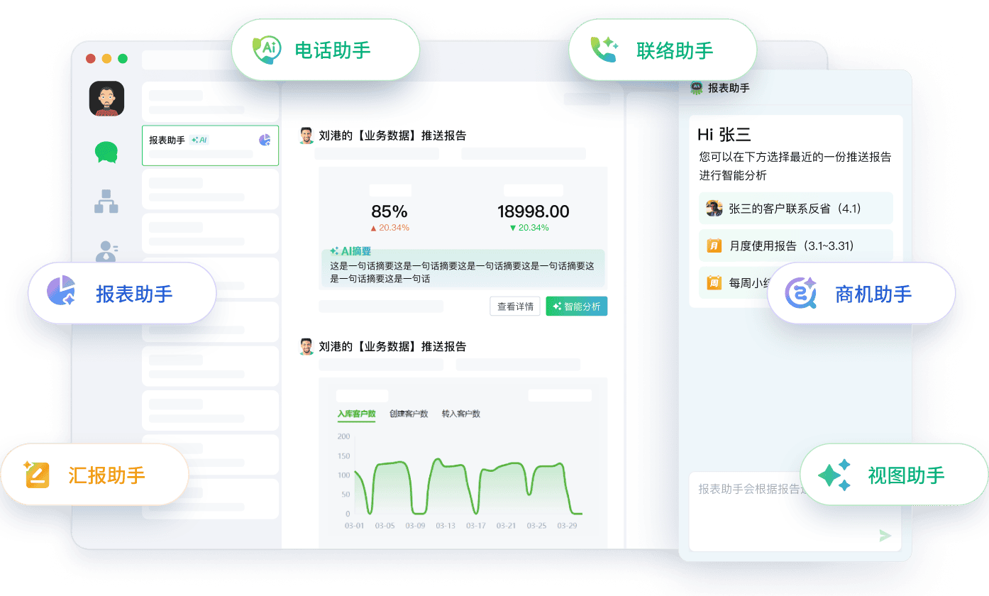 - AI能够快速处理海量数据,实时分析客户数据,生成详细的报告和可视化图表,帮助企业管理层快速了解业务状况。例如,纷享销客的AI产品可以支持智能线索分析和销售预测,帮助企业提前洞察市场趋势,优化销售策略,从而提高决策的准确性和及时性。这种数据驱动的决策方式,使得企业能够更加科学地制定战略,减少人为因素带来的不确定性。