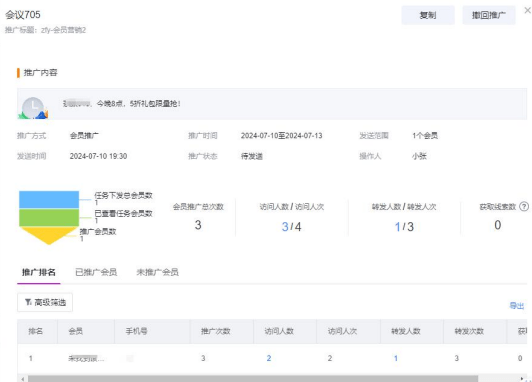 活动经理看板:监控活动参与度、线索转化漏斗、员工推广排行榜