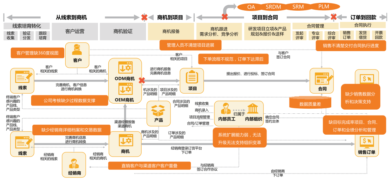 5、内部协同与数据孤岛:IT系统间存在信息断点,全业务链端到端流程未打通,导致沟通协同成本高、整体效率低下,制约整体运营效能。