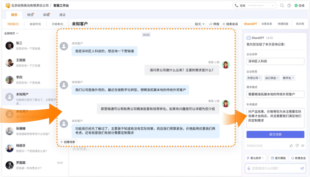 传统客服的主要职责是解决客户问题,但在智能化工具加持下,客服机器人可以成为企业获客的重要入口。纷享销客智能型CRM通过整合在线客服系统,实现了客服与营销的深度协同。