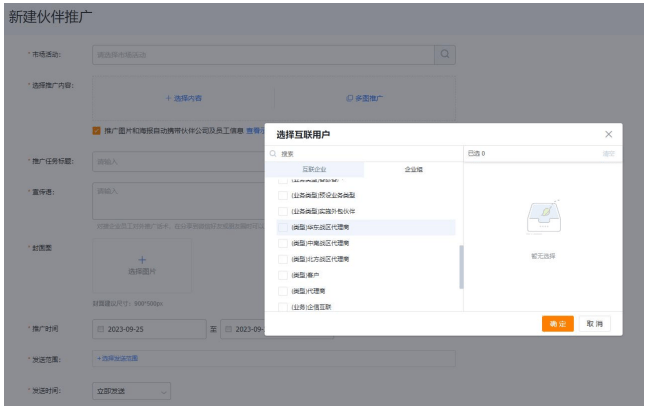 全员推广模式借助员工、合作伙伴企业、客户做推广传播,使每个人成为营销裂变点和流量入口。市场部门可以下发推广任务,员工在营销通移动端、企微、钉钉收到任务通知后一键转发,实现微信裂变传播。系统实时跟踪员工推广情况、内容传播效果和线索获取进展,为优化推广策略提供数据支持。