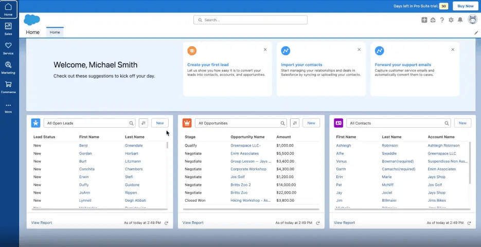 (1)Salesforce:提供极强的深度定制能力。