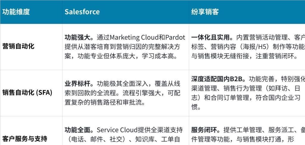 若企业全球化运营、流程标准化程度高、IT资源充足,Salesforce 提供了无可替代的技术深度;