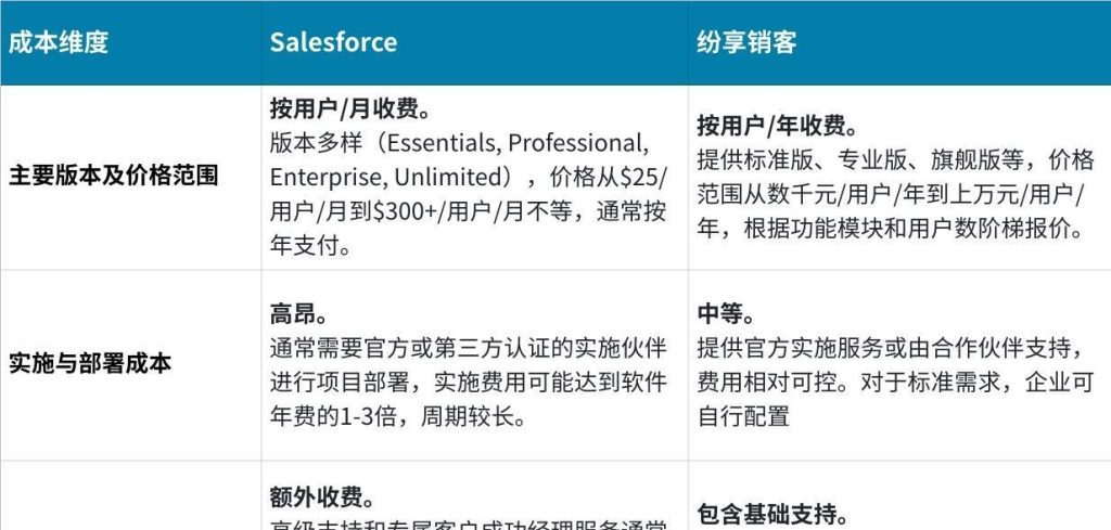 选择CRM不仅是选择功能,更是对企业预算和长期投入的一次重要决策。三款软件的定价模式和成本构成差异巨大,直接影响了其成本效益。