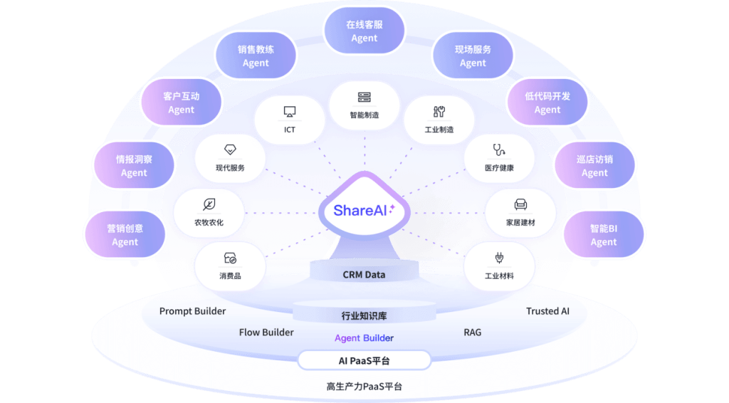 纷享销客的 ShareAI 平台正是这一范式的典型代表,它不再是单一功能,而是构建了一个企业级 Agent 矩阵,将 AI 能力深度融合进 CRM 的血脉之中。