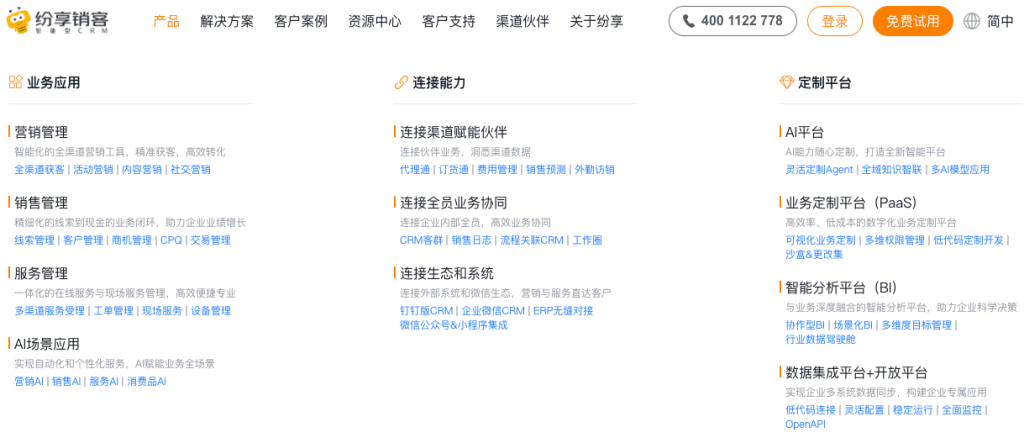 技术架构与开放集成:系统的技术架构是否先进、稳定、可扩展?是否支持云部署或混合部署?其技术是否与企业现有IT环境兼容?纷享销客基于强大的PaaS平台构建,不仅满足企业随需定制的个性化需求,其开放平台与集成能力更能轻松连接企微、ERP、SCM等内外部系统,实现以客户为中心的数据流转和业务协同