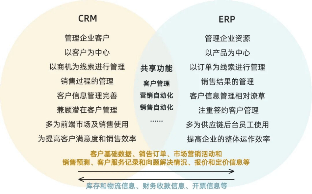 据知名市场分析机构Aberdeen Group的研究显示,集成CRM和ERP的企业,其销售目标达成率比未集成的企业高出约13%。这是企业最核心、最常见的一对集成关系,CRM将客户订单、需求预测等信息传递给ERP,ERP根据这些信息进行生产计划、库存调配等资源管理,同时ERP的库存、订单状态等数据也会反馈给CRM,帮助销售团队及时了解交付情况。它们的协同主要体现在:
