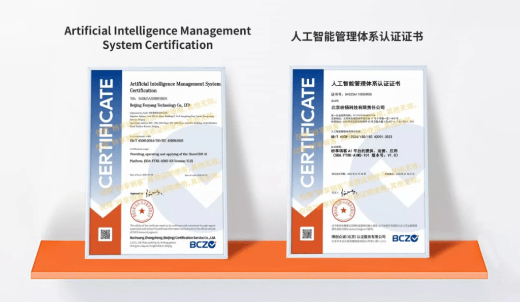 国际合规标杆:率先通过ISO 42001人工智能管理体系国际认证,成为国内首家同时获得SOC1 TypeⅡ和SOC2 TypeⅡ双重鉴定的CRM厂商,叠加ISO 27701隐私管理、ISO 27001信息安全等认证,其合规能力接轨国际标准,可支撑企业跨境业务的数据安全需求。