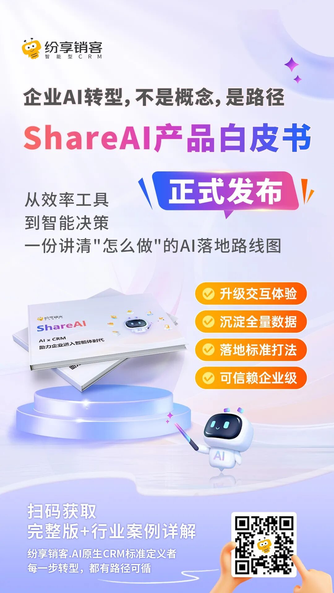 在此坚实基础上,纷享销客持续探索与实践,将 AI 从单一的功能创新全面升级为驱动企业增长的系统化引擎,正式推出《纷享销客 AIxCRM,助力企业进入智能体时代(2026版)》。