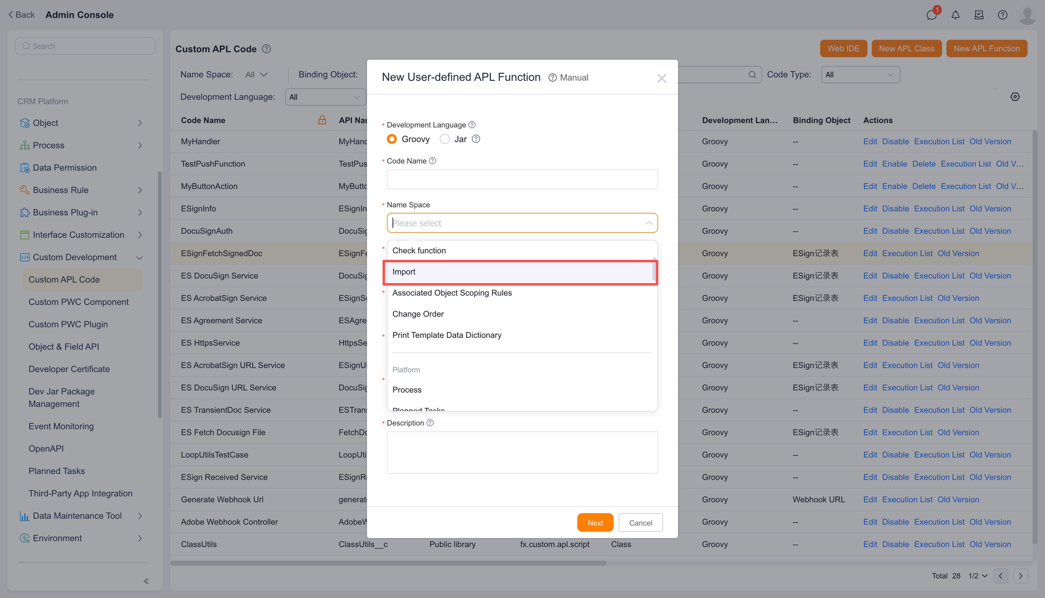 # 5. Obtain the function apiname and submit for approval to bind the business function