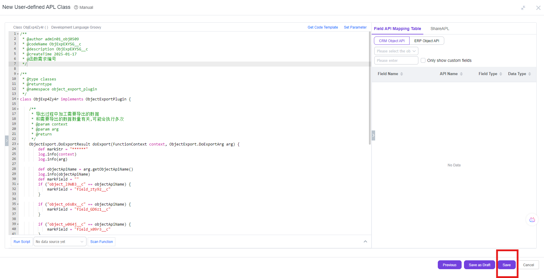 # 2. Select "Object Export Plugin" for the function namespace, then complete the function name, remarks, and other information