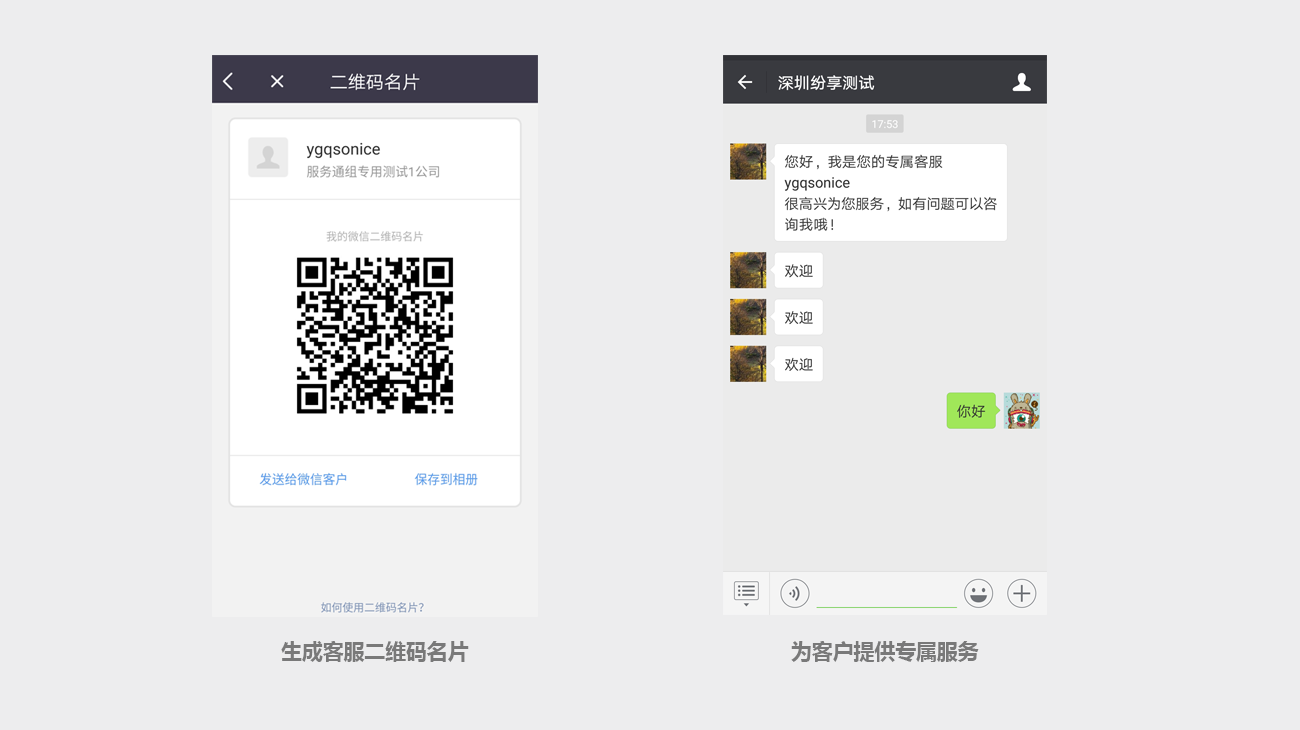 生成客服人员的专属二维码名片,分享给客户或潜在客户,他们扫描二维码后,自动成为该客服的微信联系人,客服可以为他们提供专属服务。