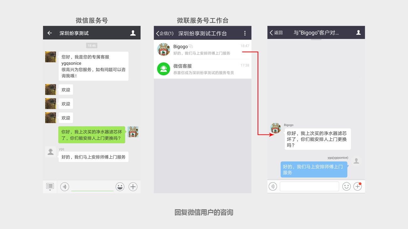 微信客服人员可以查看和处理客户在微信服务号发起的咨询消息。
