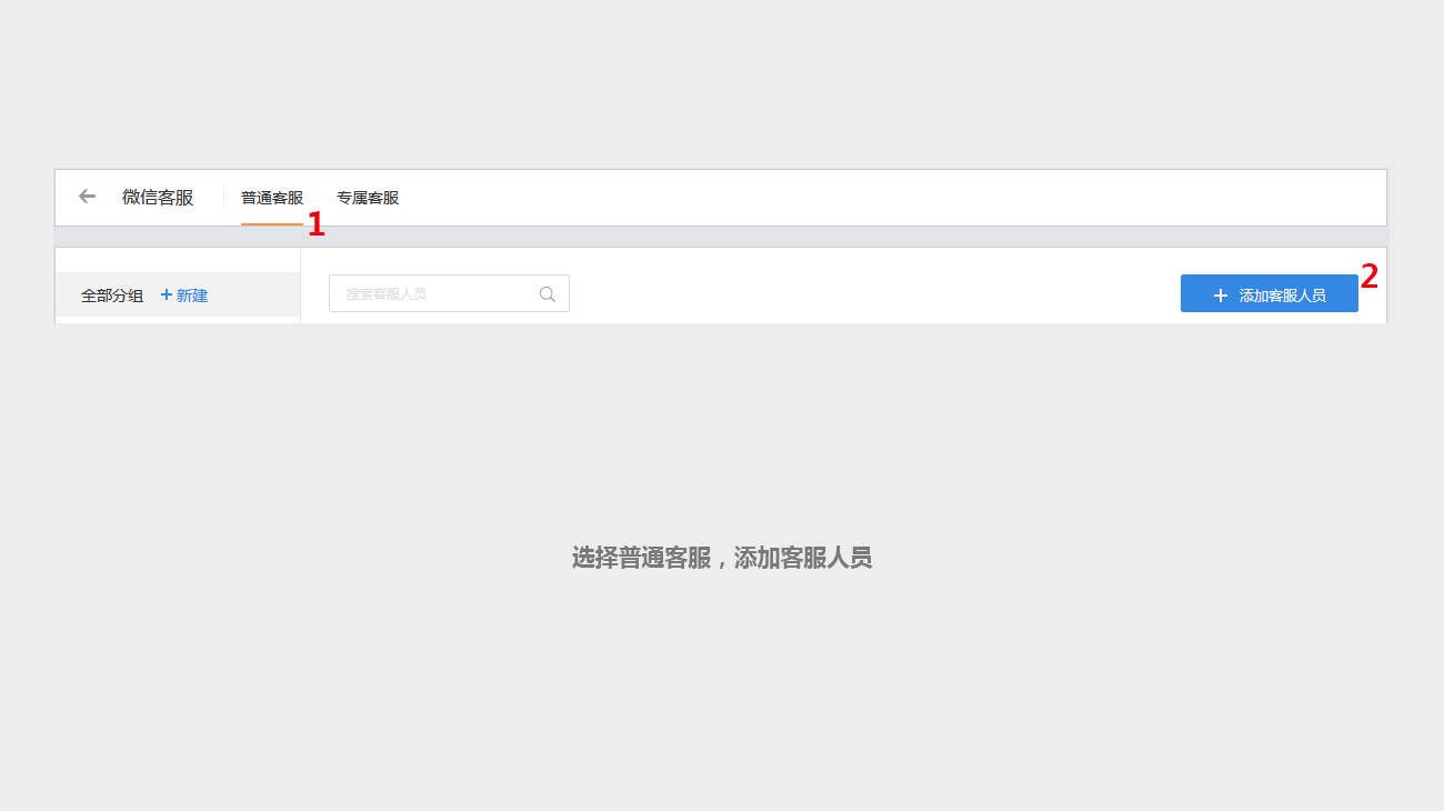 服务号管理员进入【服务号工作台】-【微信客服】,添加客服人员,一共有三种客服角色:客服主管、普通客服和专属客服。客服来源分为手动和CRM,已关联CRM客户的外部联系人,如果CRM中分配了客户负责人,该负责人会自动同步到这来成为微信客服,这类客服的来源会显示为“CRM”;手动添加的客服的来源会显示为“手动”。手动添加客服只允许从CRM人员中选人,且需要先确定客服角色。
